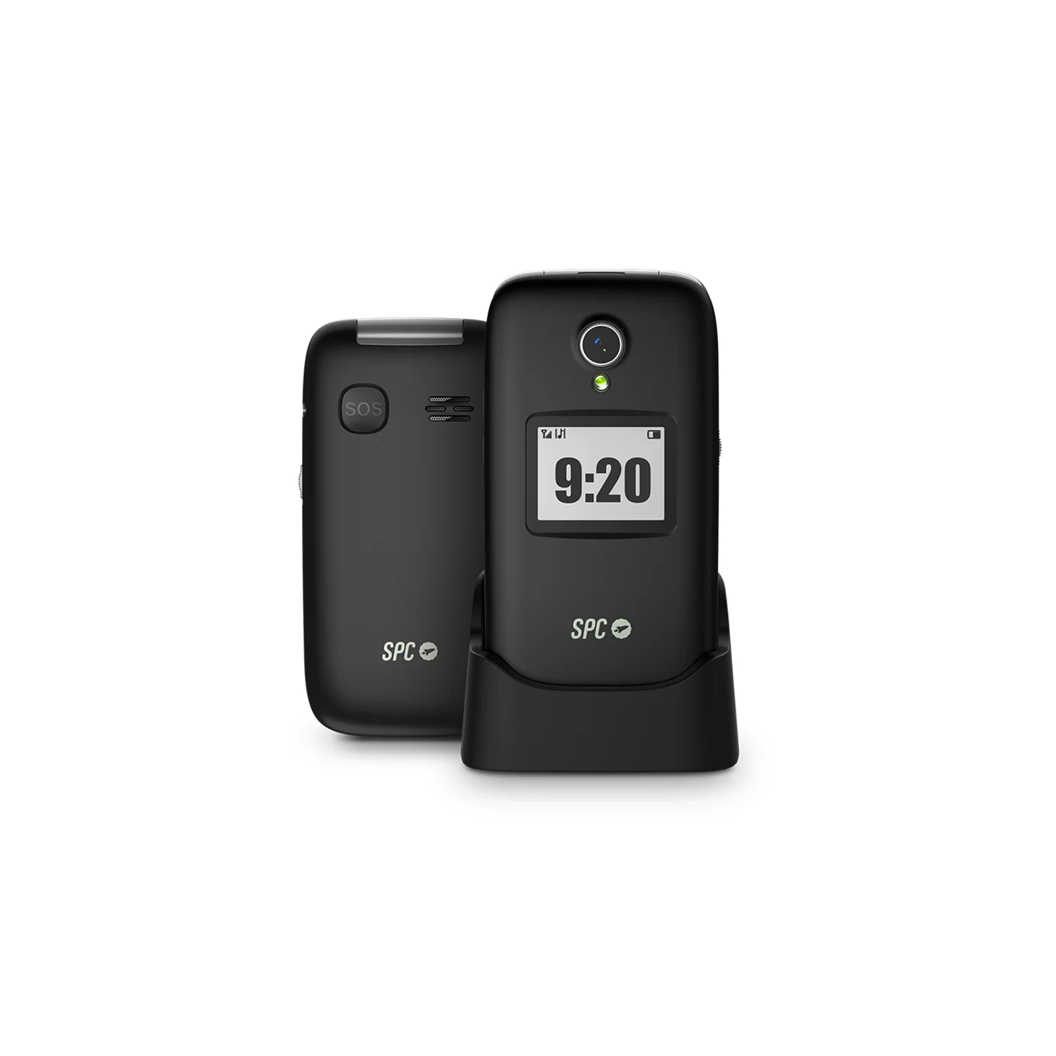 Teléfono móvil 4G con tapa para personas mayores, fácil de usar y diseñado para ofrecer tranquilidad. Compatible con la aplicación de control remoto SPC Care para poder ayudar y localizar a distancia. Incorpora teclas grandes, doble pantalla (2,8”+1,4”), botón SOS, 3 memorias directas y base de carga. Timbre muy alto (107dB) y compatible con audífonos.